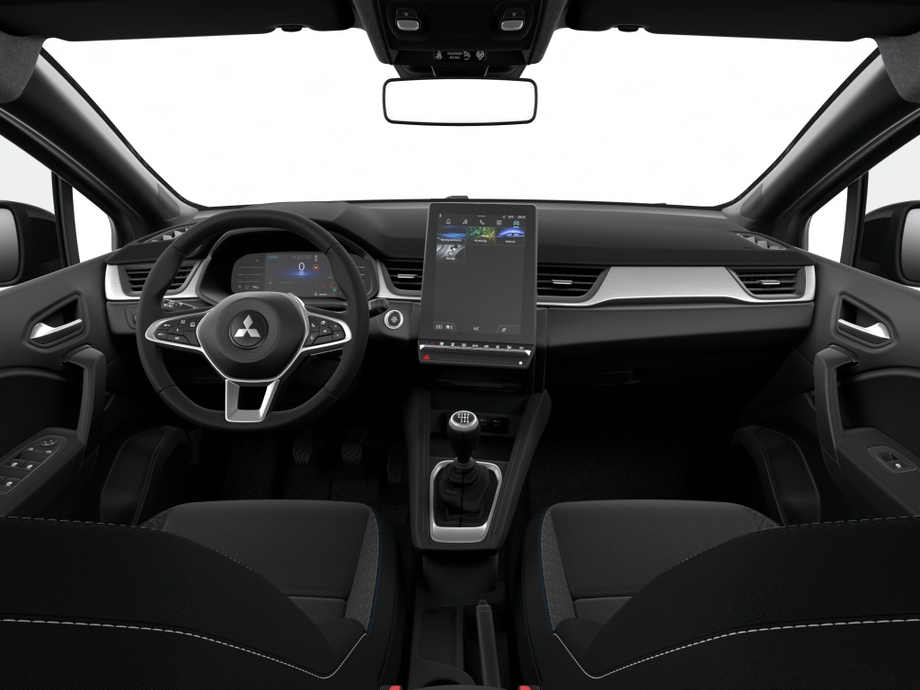 Čelní airbagy řidiče a spolujezdce (x2), spínač deaktivace airbagu spolujezdce, Boční airbagy řidiče a spolujezdce (x2), hlavové (okenní) airbagy vpředu a vzadu (x2), Antiblokovací brzdový systém (ABS), Elektronický systém rozdělení brzdného účinku (EBD), Nouzový brzdový asistent (EBA), Systém signalizace nouzového brzdění (ESS), Systém aktivního řízení stability (ASC), Systém elektronického řízení trakce (TCL), Asistent rozjezdu do kopce (HSA), Upozornění na dodržování bezpečného odstupu, Systém monitorování a podpory udržování jízdního pruhu (LDW), Aktivní systém udržení v jízdním pruhu (LKA), Sada pro nouzovou opravu pneumatik, Elektronický imobilizér, Dětská pojistka zámků zadních dveří, 3bodový bezpečnostní pás ELR na předních sedadlech s předpínačem a omezovačem zátěže (x2), 3bodový bezpečnostní pás ELR na zadních sedadlech (x3) s předpínačem a omezovačem zátěže (x2), Výškově nastavitelné horní úchyty bezpečnostních pásů na předních sedadlech (x2), Přední LED světlomety s manuálním nastavením sklonu, LED denní světla, Zadní kombinovaná LED světla, Senzor automatického rozsvěcení světel, Automatická dálková světla (AHB), Třetí zadní brzdové LED světlo, Přední směrová světla integrovaná v předních světlometech, Zadní mlhové světlo integrované v nárazníku, Komfortní funkce světel "Coming home" a "Welcome light", Ocelové disky kol "flex" 17" + pneumatiky 215/60 R17, Elektricky ovládaná a vyhřívaná vnější zpětná zrcátka v leskle černé barvě s ukazateli směru, Podélné střešní ližiny stříbrné, Parkovací senzory vzadu (x4), Parkovací kamera vzadu s projekcí na displeji audiosystému, Tónovaná skla, přední sklo bezpečnostní laminované, zadní pevnostní temperované, Zatmavená zadní boční skla a zatmavené zadní sklo, Střešní anténa typu Shark fin, Přední a zadní nárazník v barvě karoserie, Kliky dveří v barvě karoserie, Prostřední boční dveřní sloupek v černé barvě, Leskle černá mřížka chladiče s chromovými akcenty, Ochranné spodní lemy dveří černé, Lemy bočních oken černé, Plastové lemy blatníků (černé), Syntetickou kůží obšitý 3ramenný multifunkční volant, Posuvná středová loketní opěrka vpředu s úložným prostorem, Stříbrné dekory palubní desky, Chromované vnitřní kliky dveří, Držáky nápojů vpředu ve středové konzole (x2), Funkce dvojitého dna v zavazadlovém prostoru, Kryt zavazadlového prostoru, Osvětlení přední části interiéru, Osvětlení zadní části interiéru, Sluneční clona u řidiče a spolujezdce s kosmetickým zrcátkem a držákem lístků, Osvětlená odkládací schránka na straně spolujezdce, Osvětlení zavazadlového prostoru, Výškově nastavitelné sedadlo řidiče, Výškově nastavitelné opěrky hlavy na předních sedadlech (x2), Výškově nastavitelné opěrky hlavy na zadních sedadlech (x3), Ukotvení dětské bezpečnostní sedačky ISOFIX (x1 na místě spolujezdce, x2 na zadních sedadlech), Centrální zamykání dveří s dálkovým ovládáním a dvěma ovladači, Inteligentní systém bezklíčového ovládání centrálního zamykání s tlačítkem START/STOP, Elektrické ovládání předních a zadních oken s funkcí AUTO a ochranou proti přivření, Elektrický posilovač řízení (EPS) s variabilním účinkem, Výškově a podélně nastavitelný volant, Dešťový senzor, Systém automatického zastavení a nastartování motoru (AS&G), Komfortní funkce ostřikovače předního skla, Elektronický zámek pátých dveří s dotykovým ovládáním, Palubní počítač, ukazatel vnější teploty, Ovládání audiosystému pod volantem, 6 reproduktorů, Plně digitální přístrojový panel se 7" TFT displejem, Tlačítko pro nouzové přivolání pomoci (E-Call), Systém pro analýzu pozornosti řidiče, Systém předcházení a zmírňování následků čelního nárazu s detekcí chodců a cyklistů (FCM), Multikolizní brzda, Aktivní systém pro nouzové udržení v jízdním pruhu (ELKA), Systém rozpoznávání dopravních značek upravujících rychlost (TSR) s inteligentním asistentem pro dodržení povolené rychlosti, Spodní kryt předního nárazníku leskle černý, Spodní kryt zadního nárazníku leskle černý, Zadní střešní spoiler, Přihrádky s držáky nápojů ve výplních předních a zadních dveří, Čerrné přední sloupky, Tmavěšedé čalounění stropu, Látkové čalounění sedadel černé / šedé, Vyhřívaná přední sedadla (2 stupně teploty), Sedadla ve druhé řadě dělená v poměru 60:40, Posuvná lavice zadního sedadla (160 mm), Automatická klimatizace s pylovým filtrem a filtrem s aktivním uhlím, Tlačítko ECO (asistent pro hospodárnou jízdu), Elektrická zásuvka 12V (v přední části středové konzoly) (x1), Audiosystém 10,4", podpora bezdrátového Android Auto™ a CarPlay®, Bluetooth®, autorádio AM/FM/DAB (SDA), Automatické aktualizace audiosystému, Komunikace s vozidlem a ovládání některých jeho funkcí prostřednictvím mobilní aplikace My Mitsubishi, Datový a nabíjecí vstup USB-C na předním panelu (x2), Palubní deska s měkkým obložením, Výdechy ventilace pro zadní cestující (pod předními sedadly a v zadní části středového tunelu), Systém kontroly tlaku v pneumatikách (TPMS), Omezovač rychlosti s ovládáním na volantu, Tempomat s ovládáním na volantu